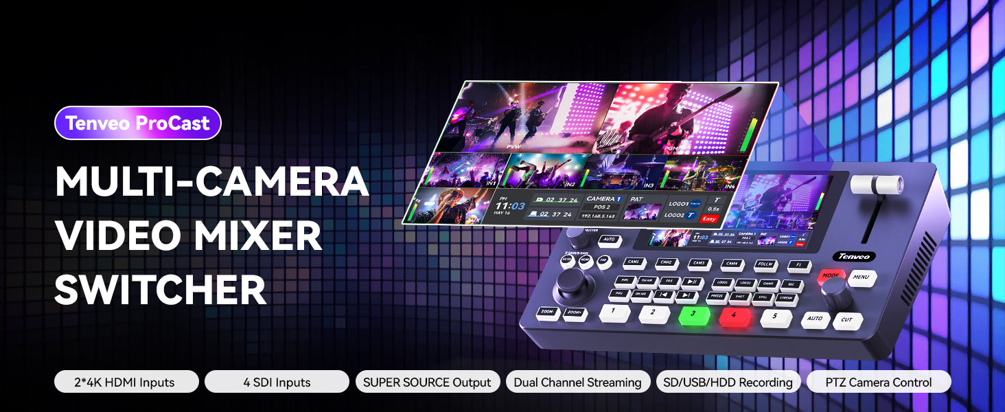 Comes with the PC500 Video Mixer Switcher, enabling smooth multi-camera switching, multi-view layouts, picture-in-picture, and real-time transitions for professional production. -